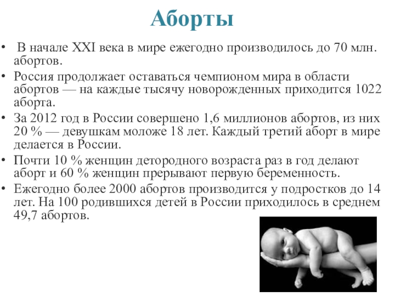 В начале ХХI века в мире ежегодно производилось до 70 млн. абортов.