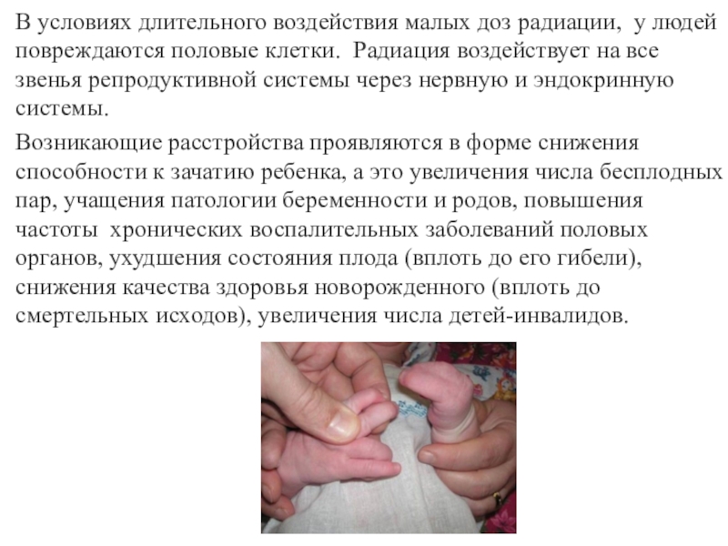 Слайд 8В условиях длительного воздействия малых доз радиации, у людей повреждаются половые