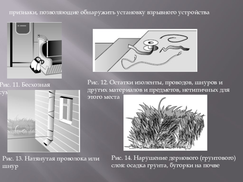 Слайд 16признаки, позволяющие обнаружить установку взрывного устройства