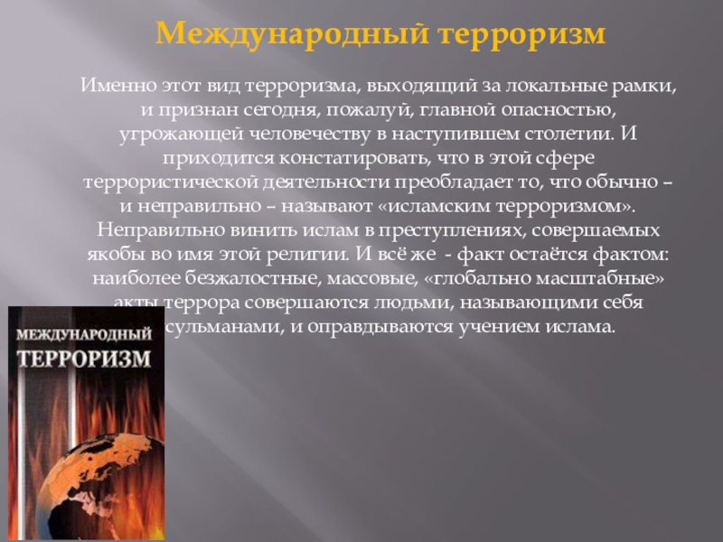 Именно этот вид терроризма, выходящий за локальные рамки, и