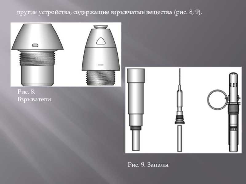 Слайд 14другие устройства, содержащие взрывчатые вещества (рис. 8, 9).