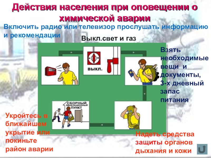 Укройтесь в ближайшем укрытие или покиньте район аварии