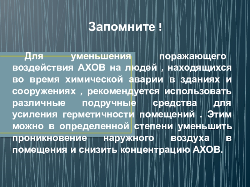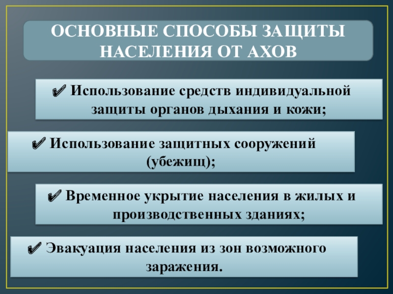 Временное укрытие населения в жилых и производственных зданиях;