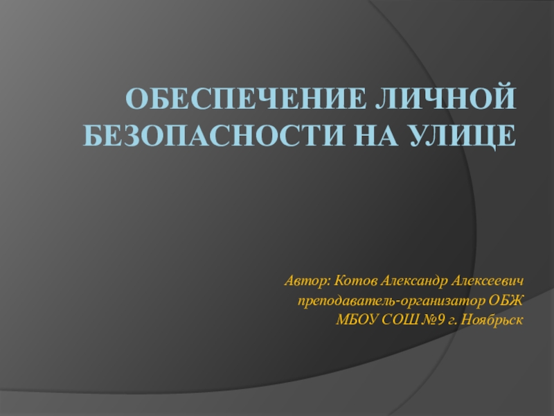 Обеспечение личной безопасности на улицеАвтор: Котов Александр Алексеевич преподаватель-организатор ОБЖМБОУ СОШ №9 г. Ноябрьск