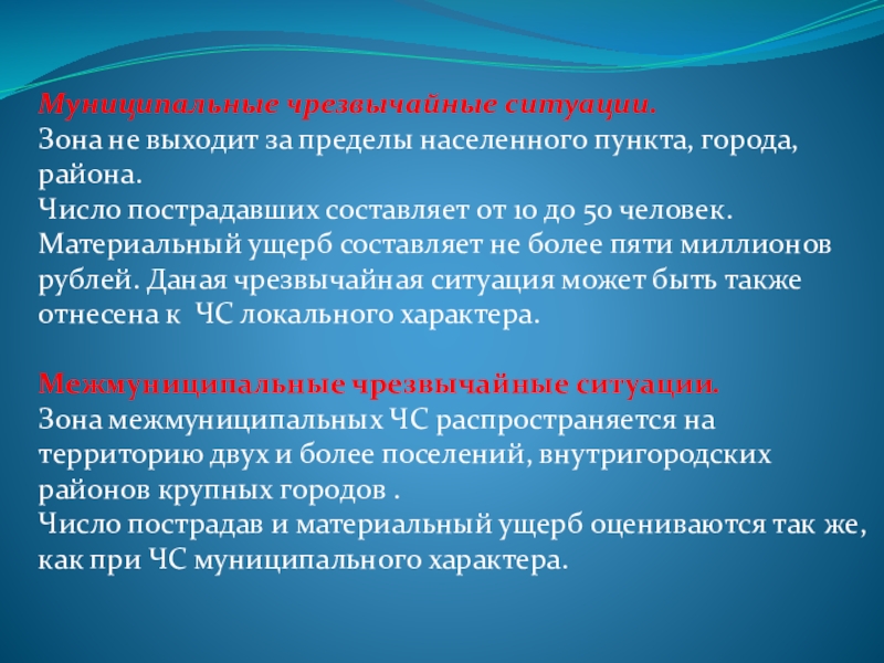 Зона межмуниципальных ЧС распространяется на территорию двух и более поселений, внутригородских районов крупных городов .