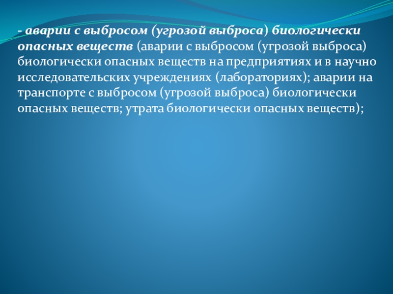 Слайд 23- аварии с выбросом (угрозой выброса) биологически опасных веществ (аварии с
