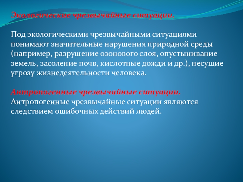 Под экологическими чрезвычайными ситуациями понимают значительные нарушения природной