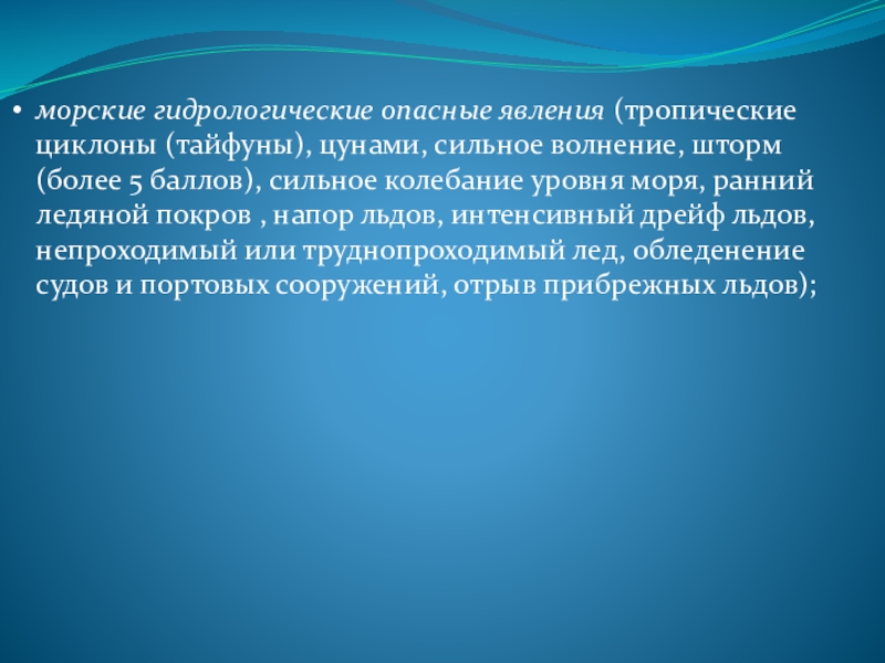 морские гидрологические опасные явления (тропические циклоны (тайфуны), цунами, сильное волнение, шторм