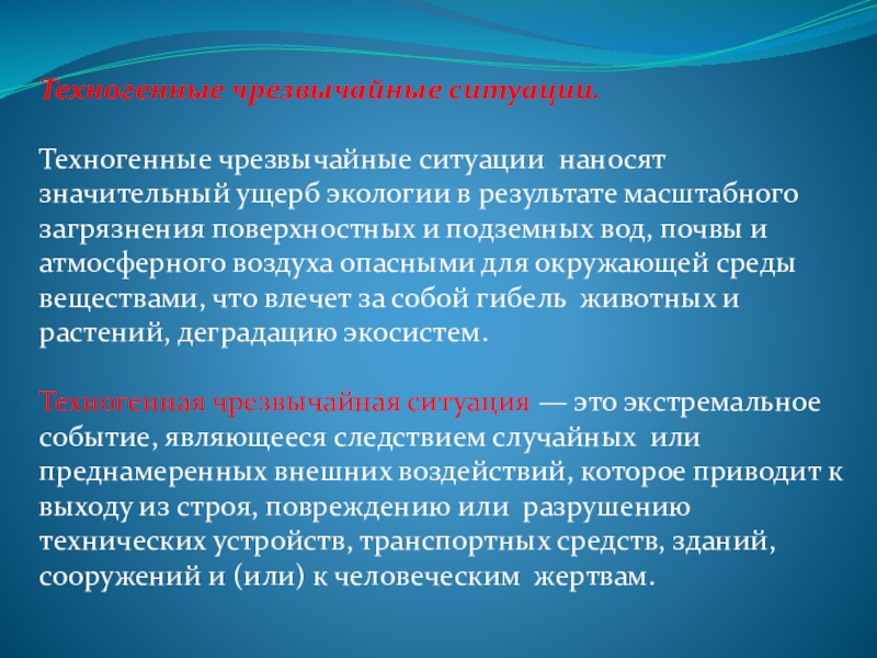 Техногенные чрезвычайные ситуации наносят значительный ущерб экологии в