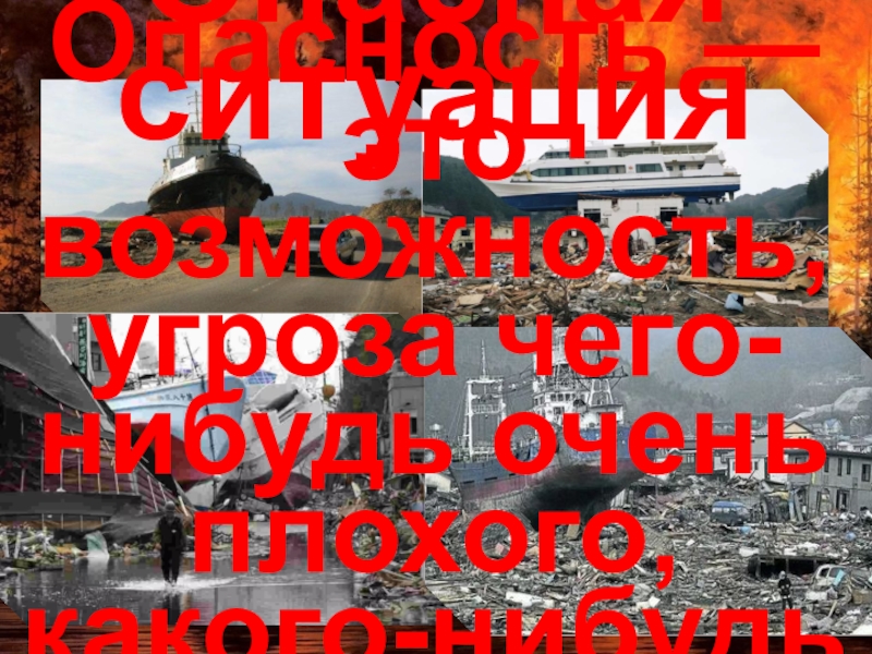 Опасная ситуацияОпасность — это возможность, угроза чего-нибудь очень плохого, какого-нибудь несчастья.