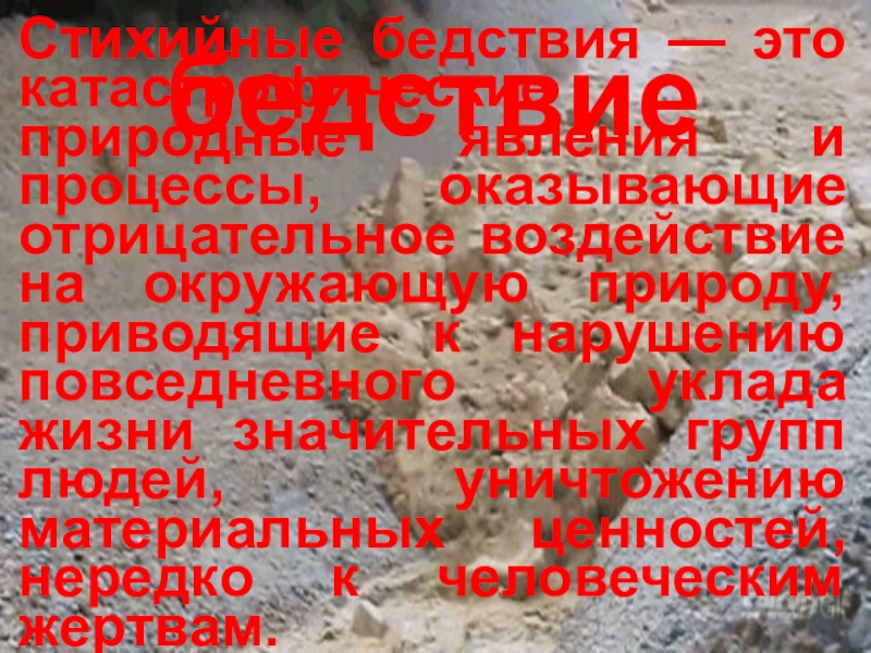 Стихийные бедствия — это катастрофические природные явления и процессы, оказывающие