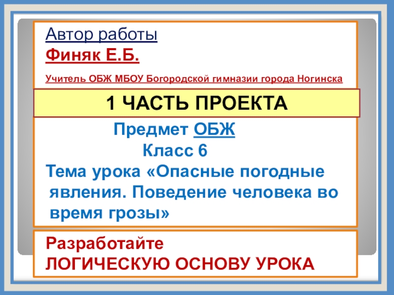 Тема урока «Опасные погодные явления. Поведение человека во время грозы»