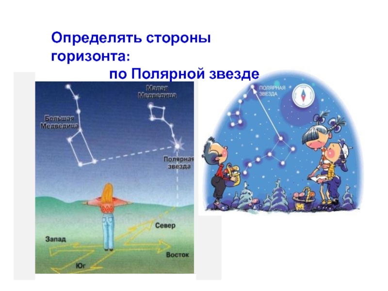 Если мысленно провести прямую линию через крайние звезды и отметить на ней пятикратное расстояние между звездами, в конце пятого отрезка будет находиться Полярная звезда.