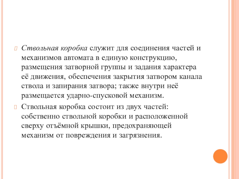 Слайд 11Ствольная коробка служит для соединения частей и механизмов автомата в единую