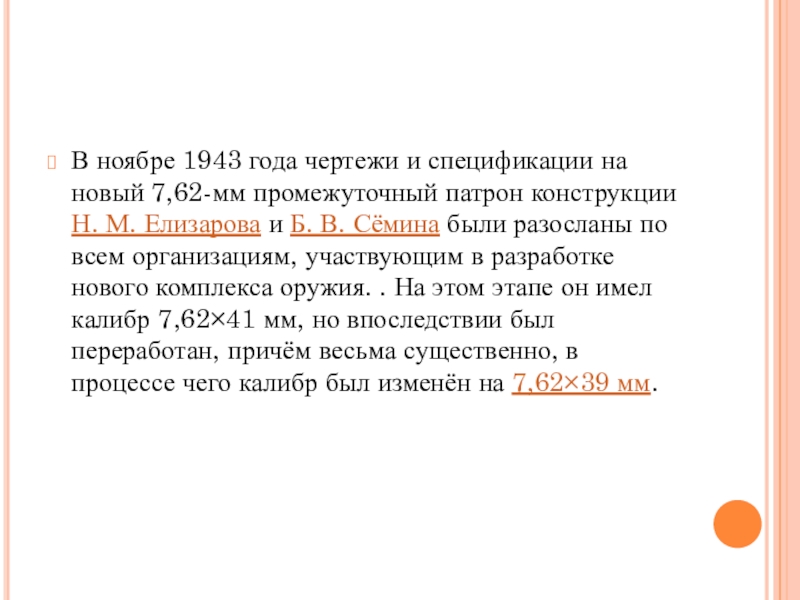 Слайд 6В ноябре 1943 года чертежи и спецификации на новый 7,62-мм промежуточный