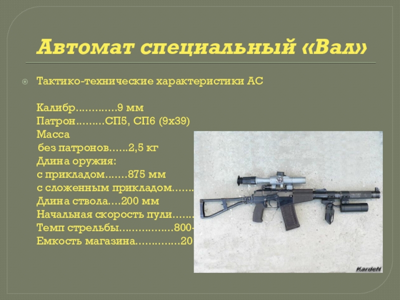 Темп стрельбы…800-900 выстр./мин