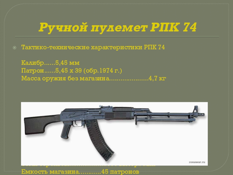 Слайд 19Ручной пулемет РПК 74