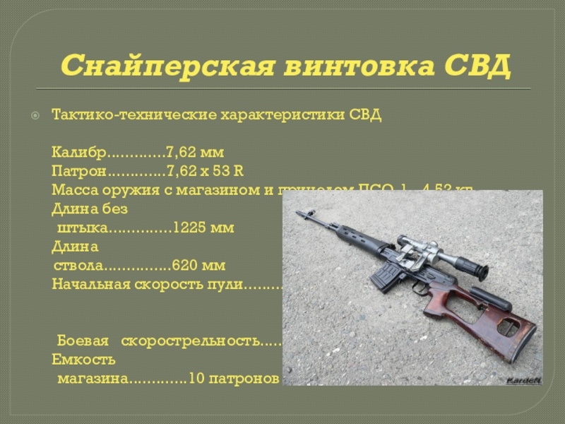 Начальная скорость пули................................820-860 м/с