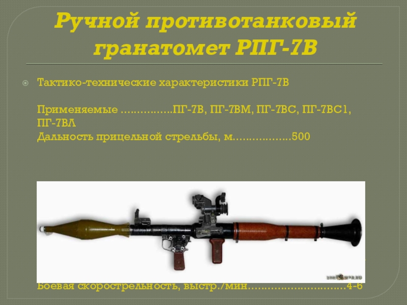 Слайд 23Ручной противотанковый гранатомет РПГ-7В
