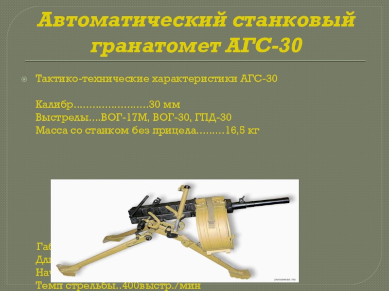 Слайд 24Автоматический станковый гранатомет АГС-30