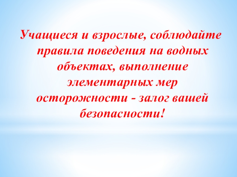 Учащиеся и взрослые, соблюдайте правила поведения на водных объектах,