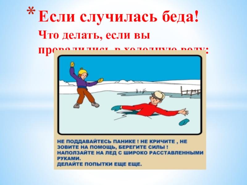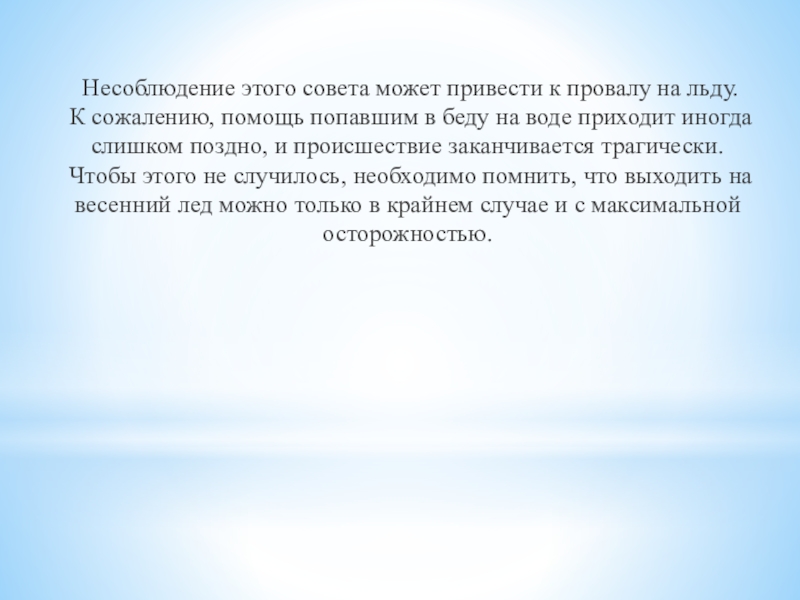 Слайд 19 Несоблюдение этого совета может привести к провалу на льду.