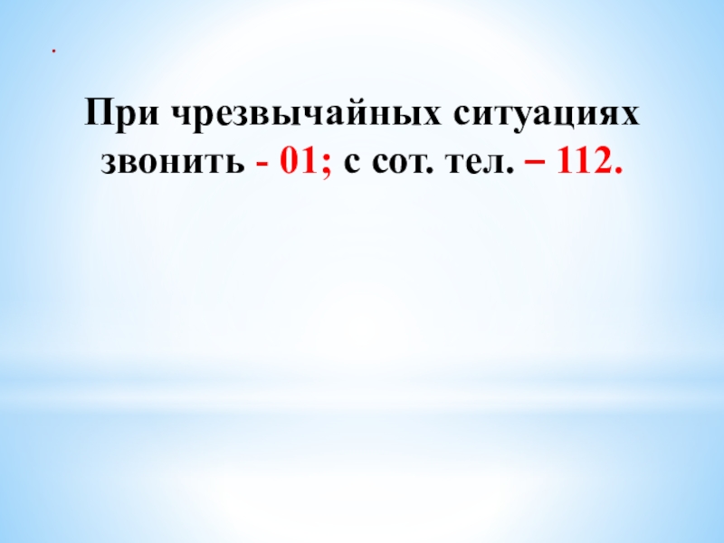 При чрезвычайных ситуациях звонить - 01; с сот. тел. –