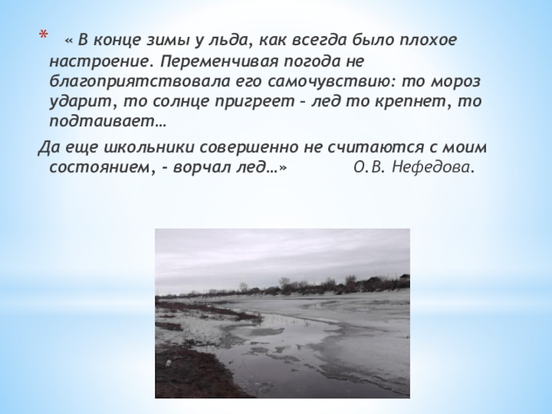 Да еще школьники совершенно не считаются с моим состоянием, - ворчал лед…» О.В. Нефедова.