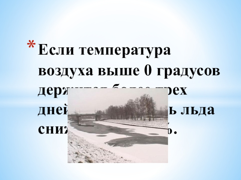 Слайд 9Если температура воздуха выше 0 градусов держится более трех дней, то