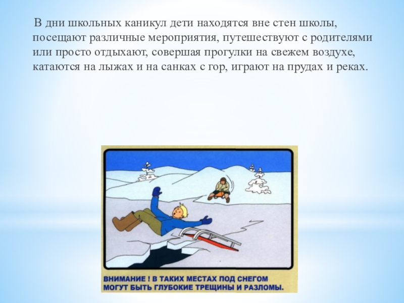 Слайд 3 В дни школьных каникул дети находятся вне стен школы,