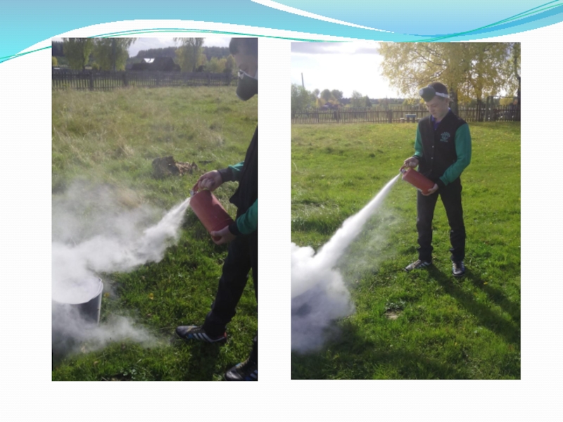 Слайд 11Учение по пользованию огнетушителя ОП-4