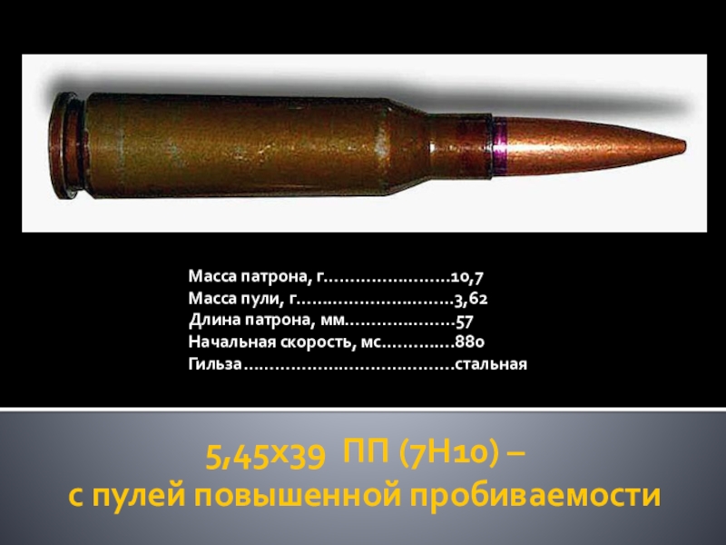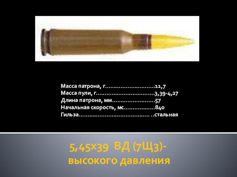 Слайд 285,45х39 ПСП – патрон специальный подводный