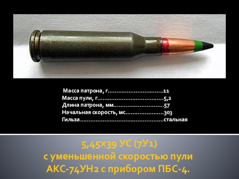 Слайд 97,62x39 УС - уменьшенной скорости пули