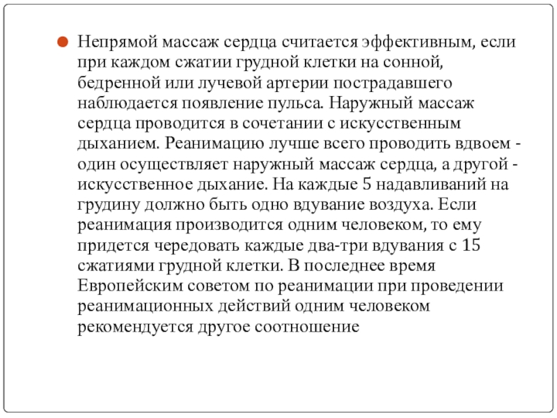 Слайд 37Непрямой массаж сердца считается эффективным, если при каждом сжатии грудной клетки