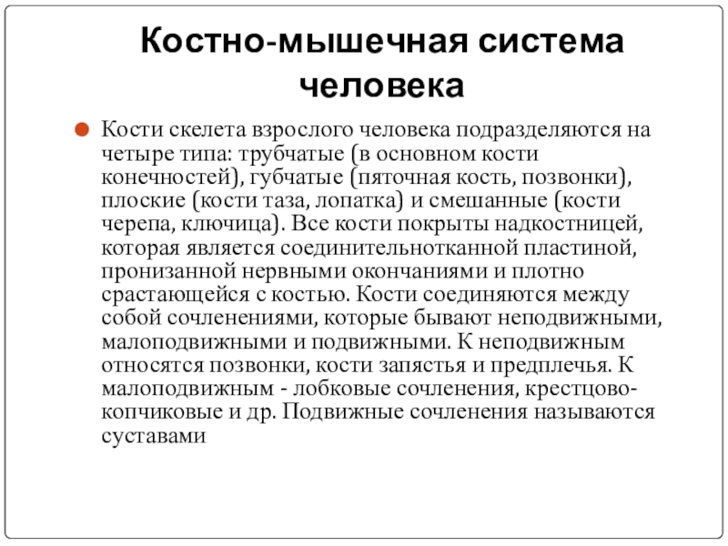 Кости скелета взрослого человека подразделяются на четыре типа: трубчатые