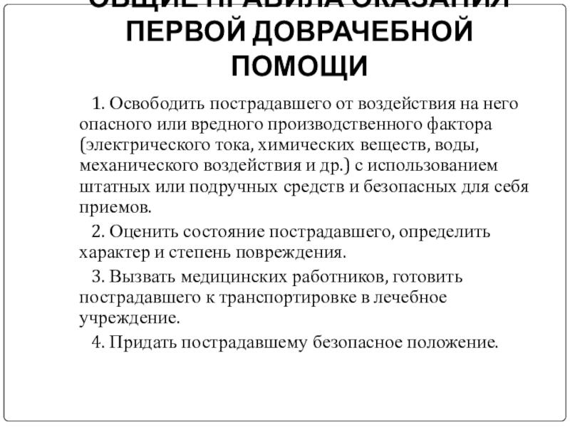 Слайд 19ОБЩИЕ ПРАВИЛА ОКАЗАНИЯ ПЕРВОЙ ДОВРАЧЕБНОЙ ПОМОЩИ