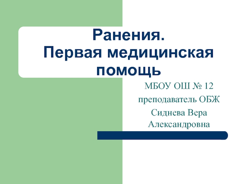 Ранения.  Первая медицинская помощь  МБОУ ОШ № 12преподаватель ОБЖ Сиднева Вера Александровна