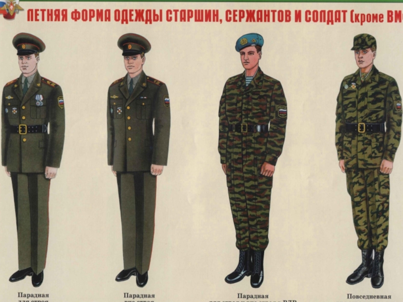 Презентация по ОБЖ по теме Форма одежды военнослужащих ВС РФ ОБЖ