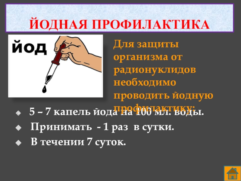 Для защиты организма от радионуклидов необходимо проводить йодную профилактику: