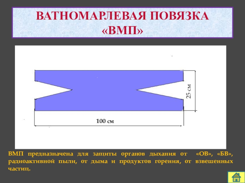 Слайд 13ВАТНОМАРЛЕВАЯ ПОВЯЗКА «ВМП»