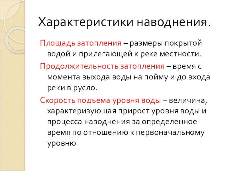 Скорость подъема уровня воды – величина, характеризующая прирост уровня воды и процесса наводнения за определенное время по отношению к первоначальному уровню