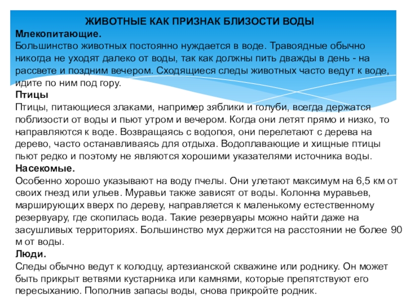 Прежде всего ищите в этих районах признаки воды. К ним относятся: направление полета птиц, расположение растительности, сходящиеся направления звериных троп.