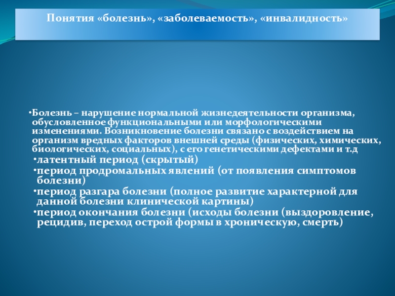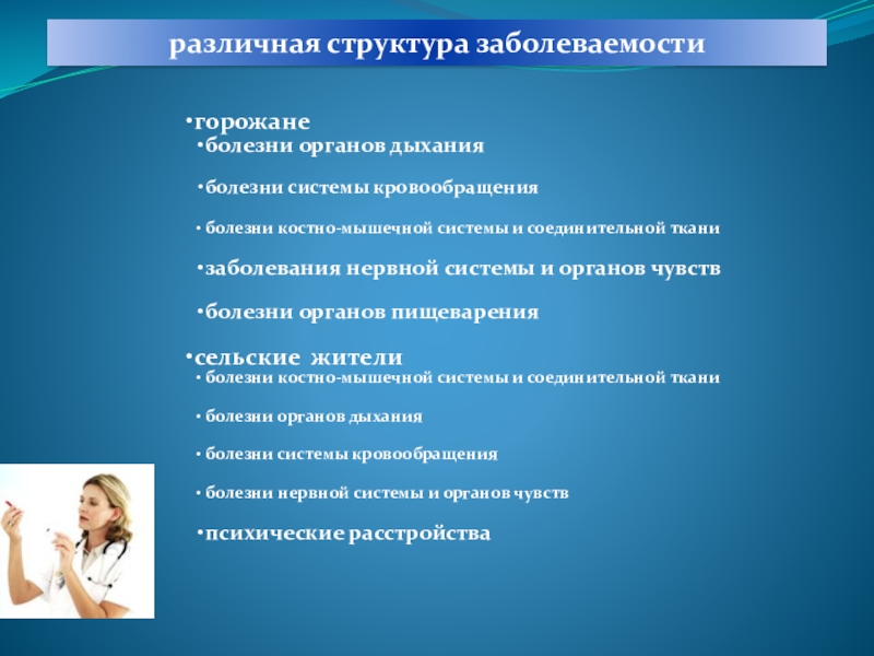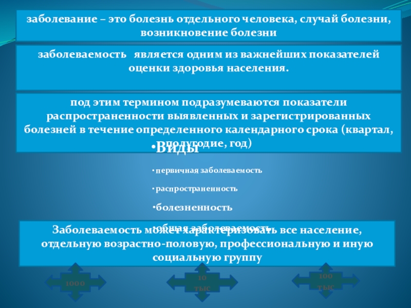 Заболеваемость может характеризовать все население, отдельную возрастно-половую, профессиональную и иную социальную группу