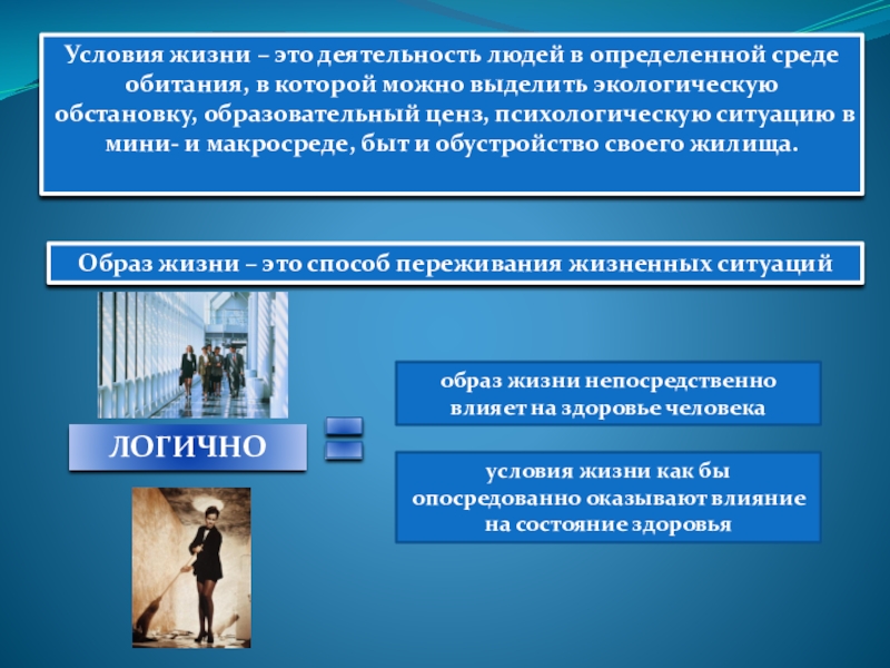 условия жизни как бы опосредованно оказывают влияние на состояние здоровья