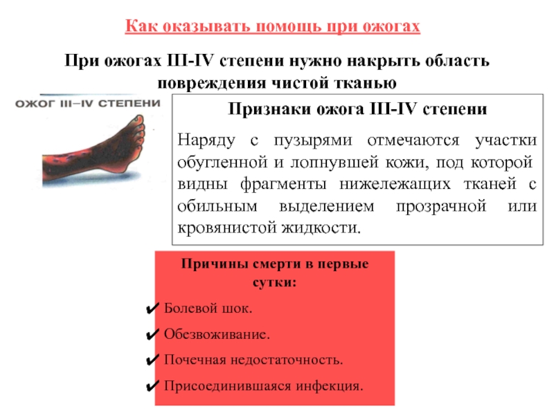 Признаки ожога III-IV степени