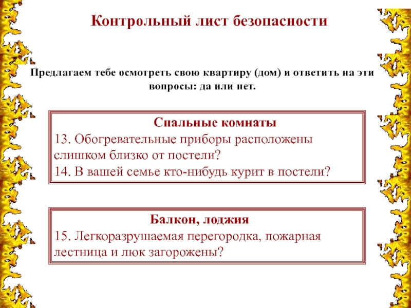 13. Обогревательные приборы расположены слишком близко от постели?