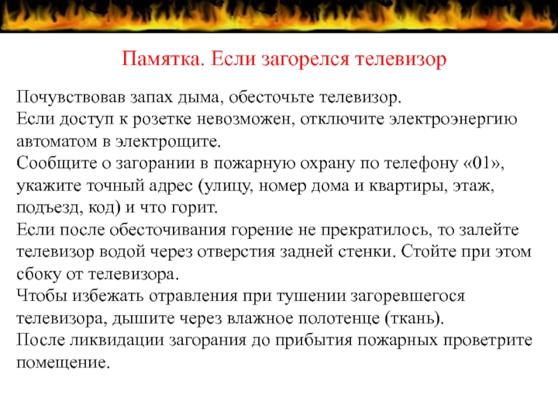 Памятка. Если загорелся телевизор