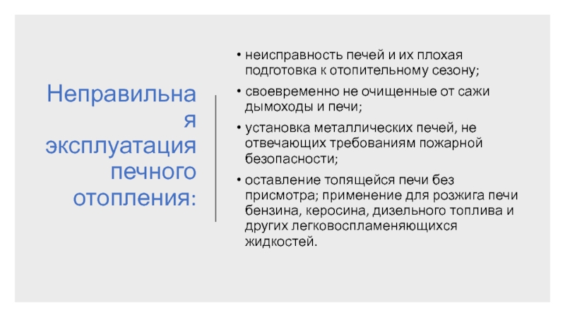 Слайд 14Неправильная эксплуатация печного отопления: