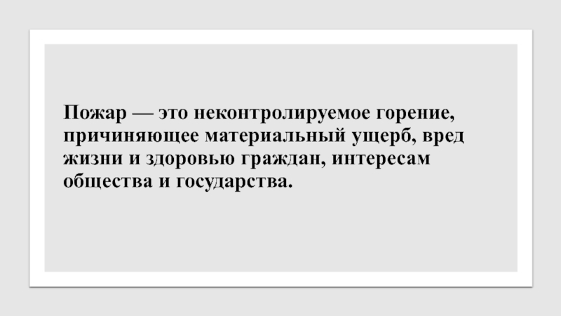 Слайд 7Пожар — это неконтролируемое горение, причиняющее материальный ущерб, вред жизни и