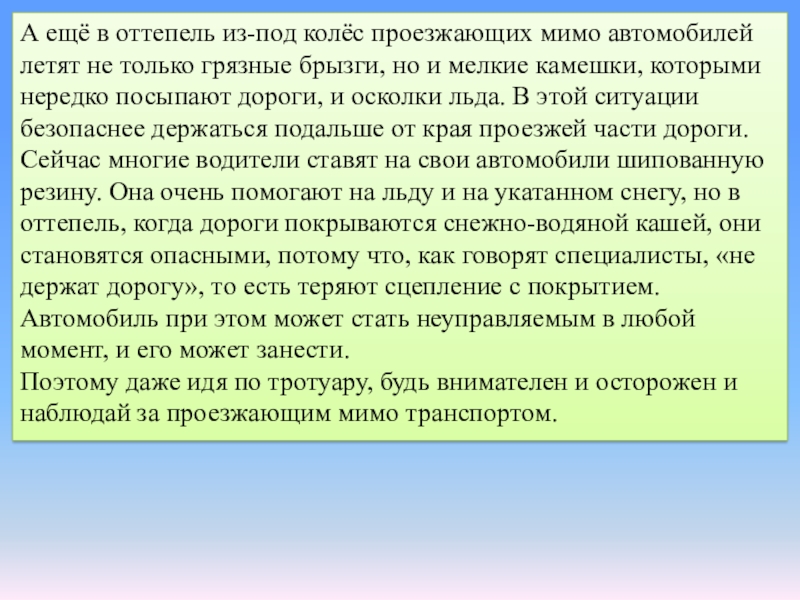 Слайд 13 Улицы посыпают специальными химикатами, чтобы не образовывался снежный накат.